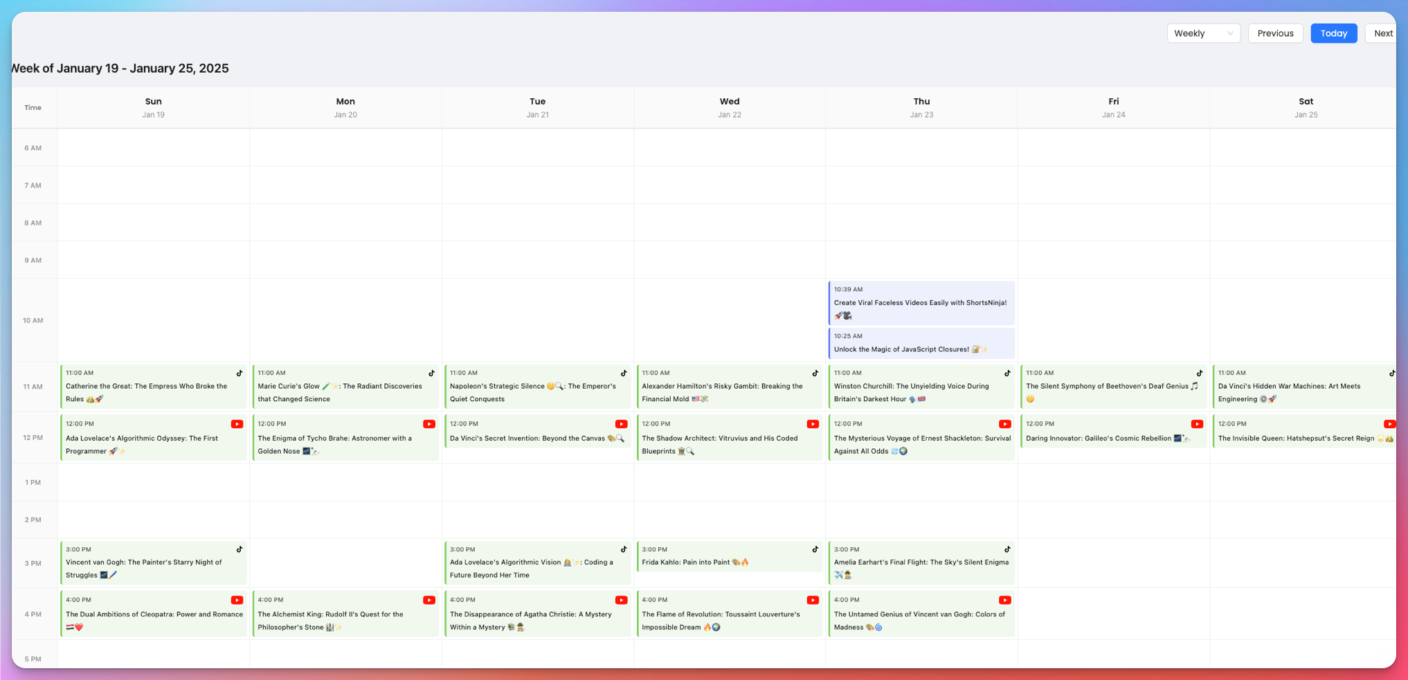 You can now view all your videos in a calendar, organized by creation or publish date, with daily, weekly, and monthly views.